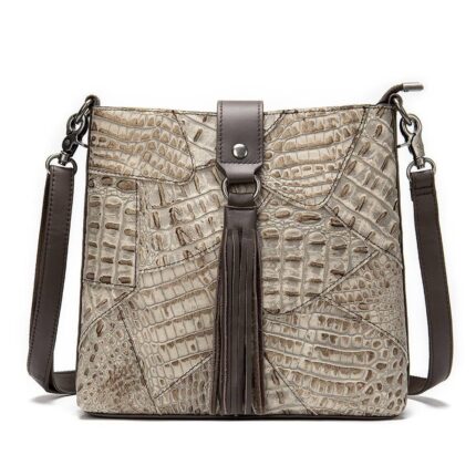 Bolso De Mano De Cuero Genuino Para Mujeres, Bolso De Bandolera Con Patrón De Cocodrilo, Lujoso Bolso De Solapa Con Asa Superior.